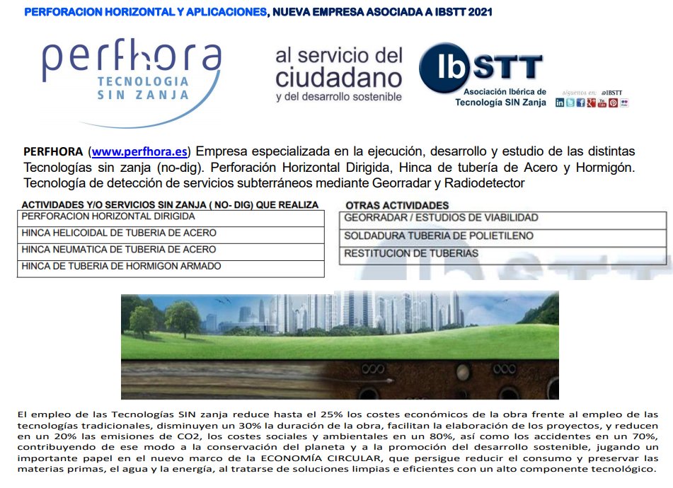 Perfhora – PERORACIÓN HORIZONTAL Y APLICACIONES, nueva empresa asociada a IBSTT 2021.