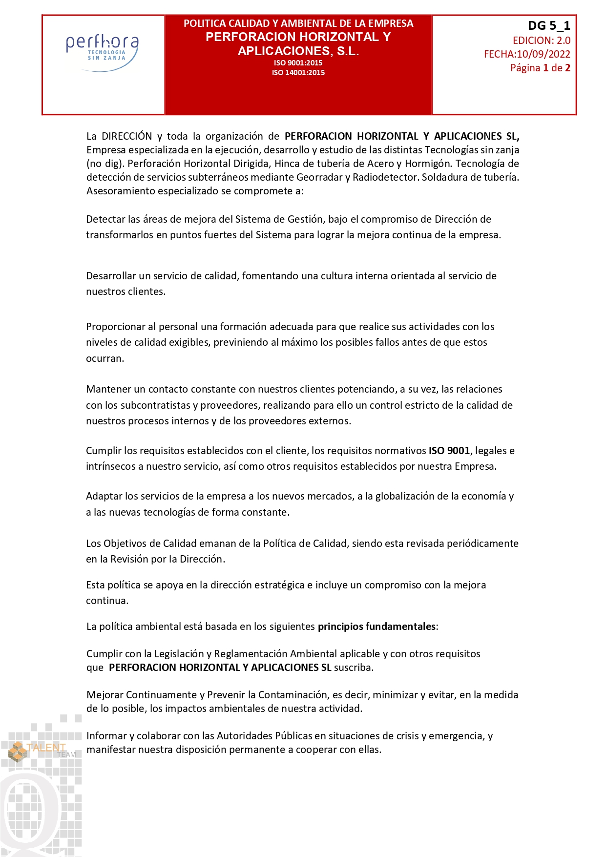POLÍTICA DE CALIDAD DE LA EMPRESA
